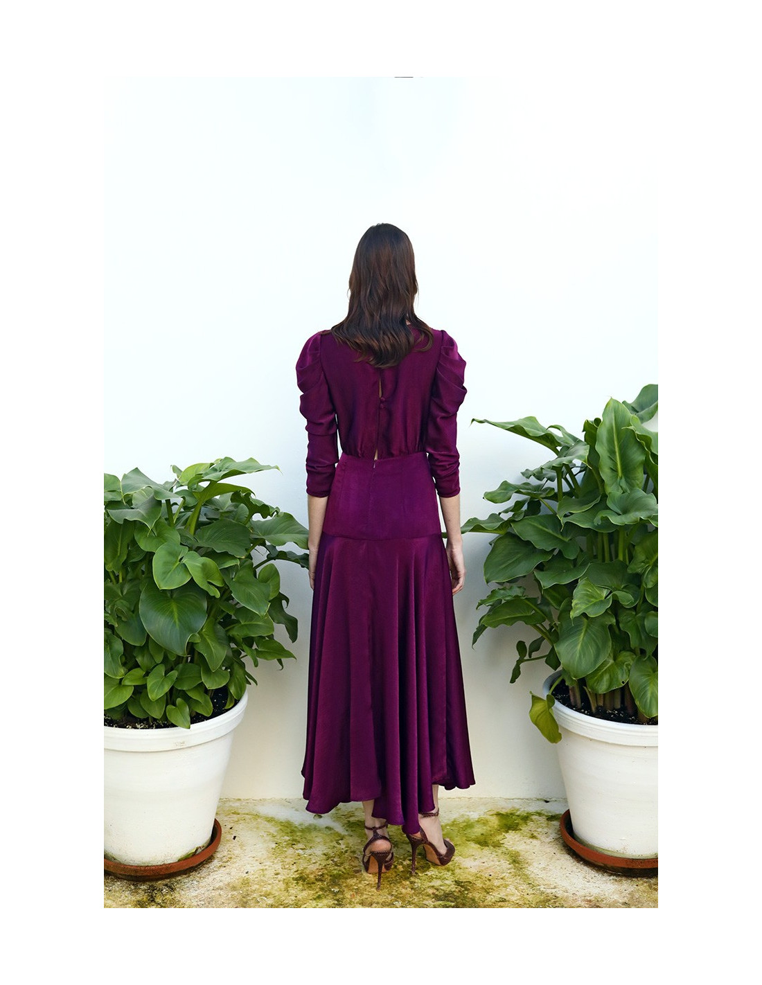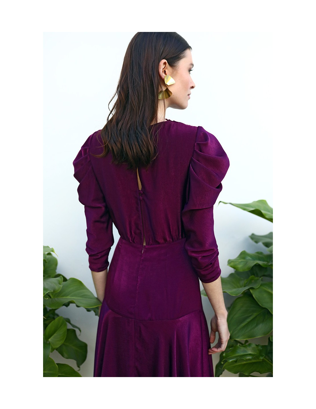 - Cierre con cremallera invisible y botones en la parte trasera.