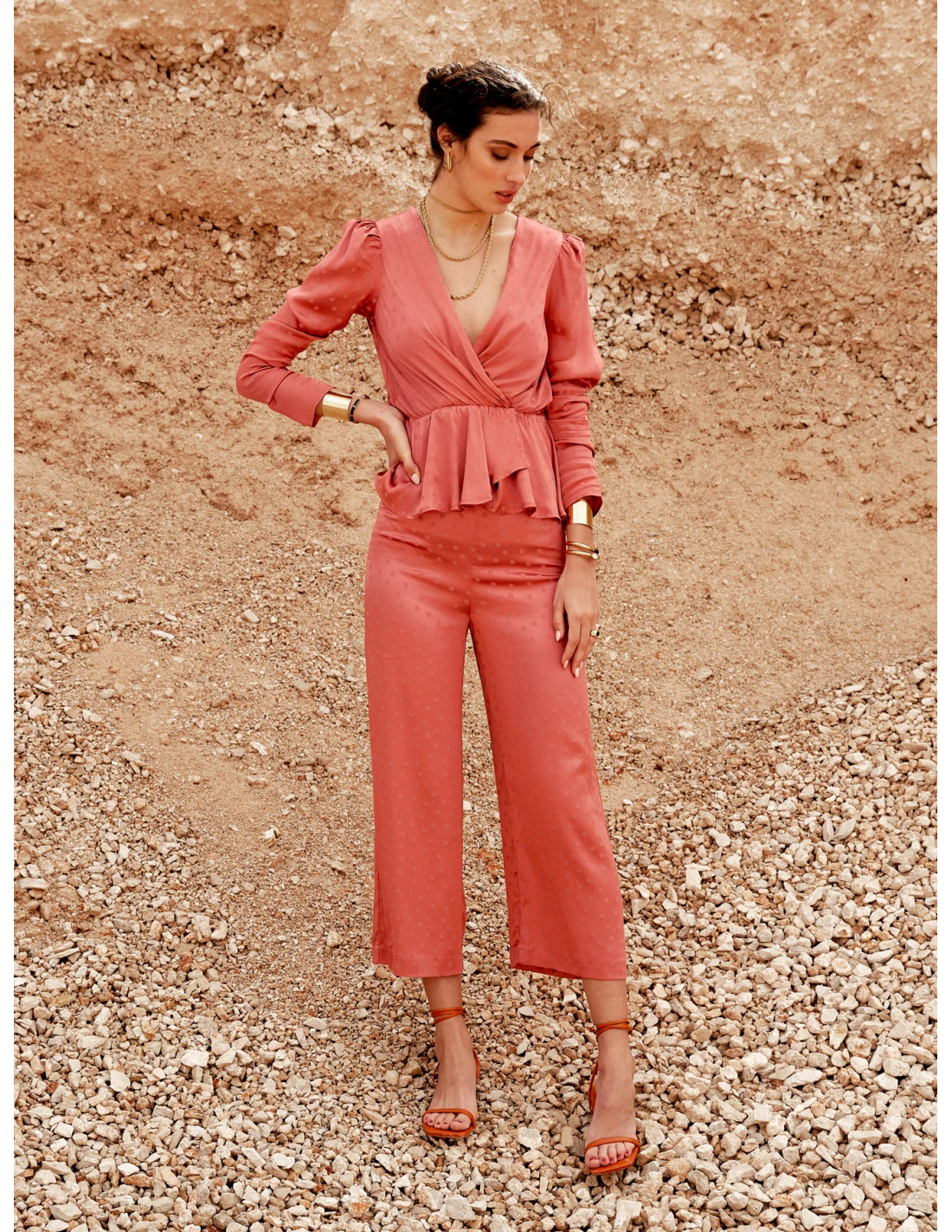 - Top de manga larga, hombros con pliegues