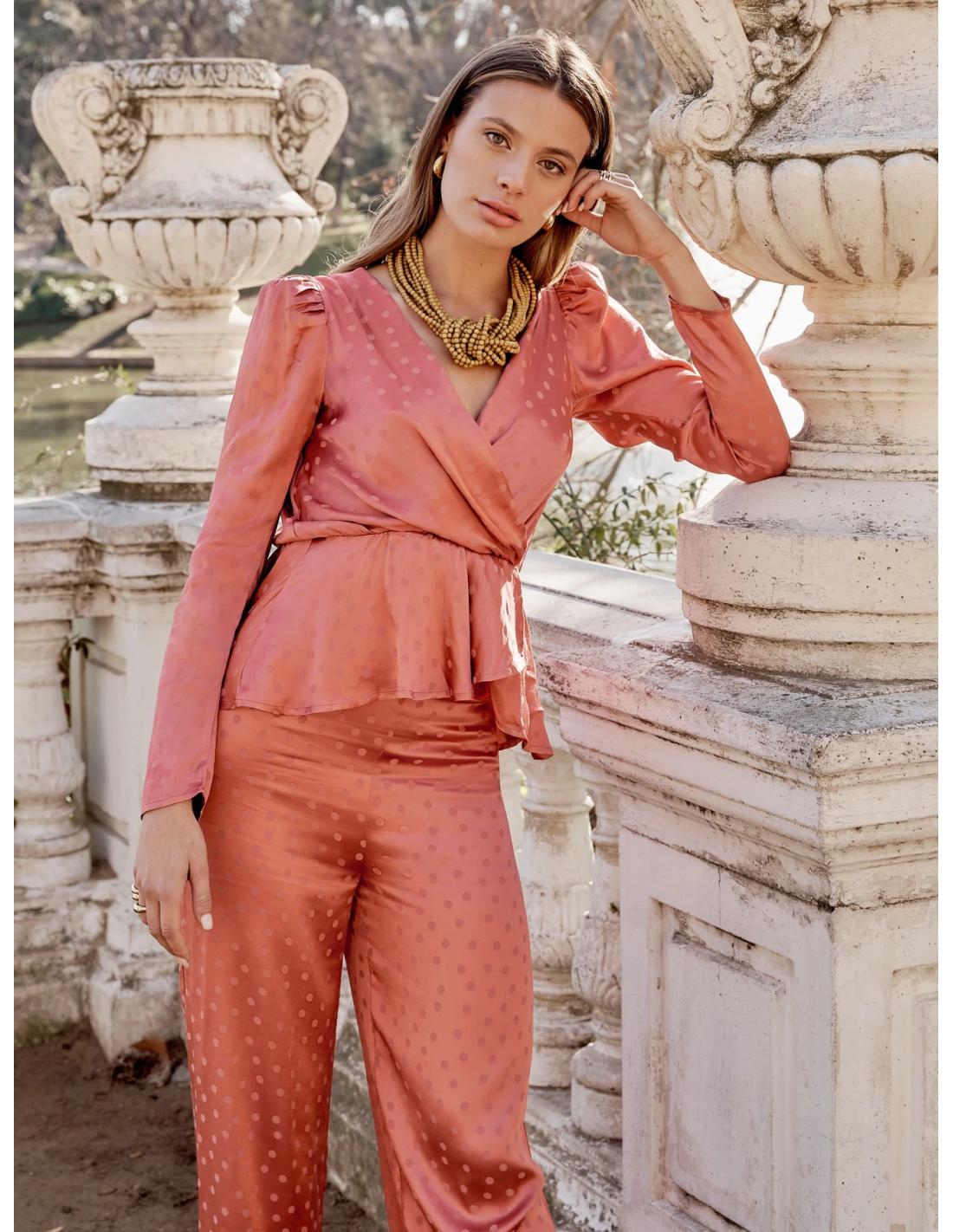 - Goma en la cintura con ligero volante