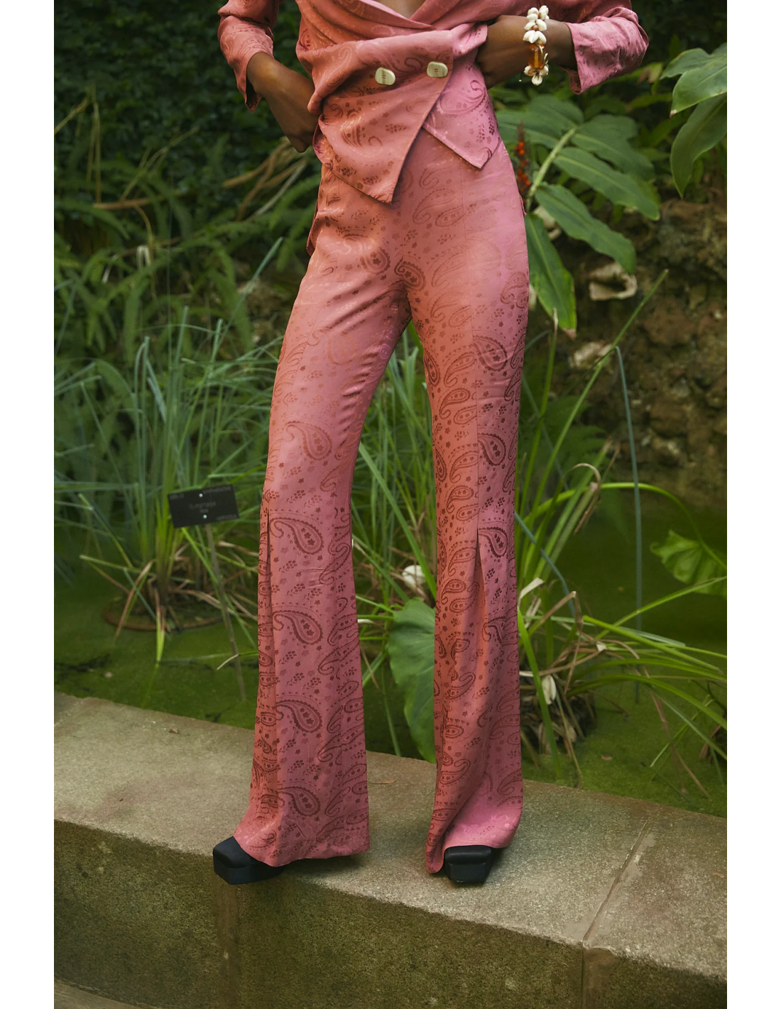 - Pantalón campana con pliegue central que hace que estilice las piernas y de mucho movimiento.