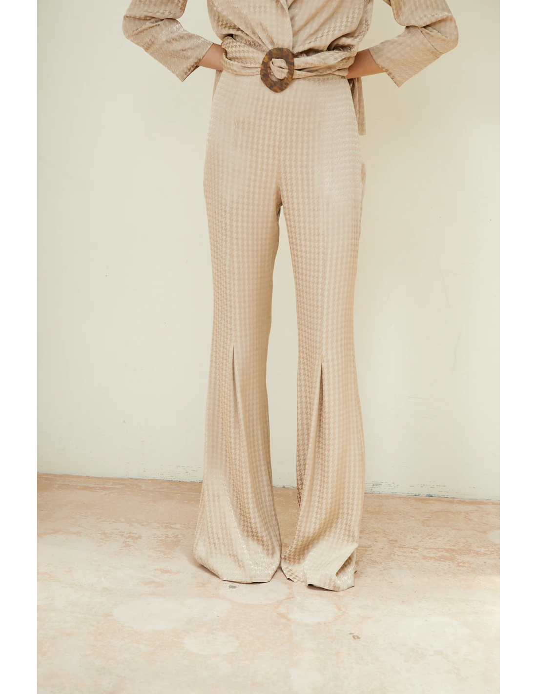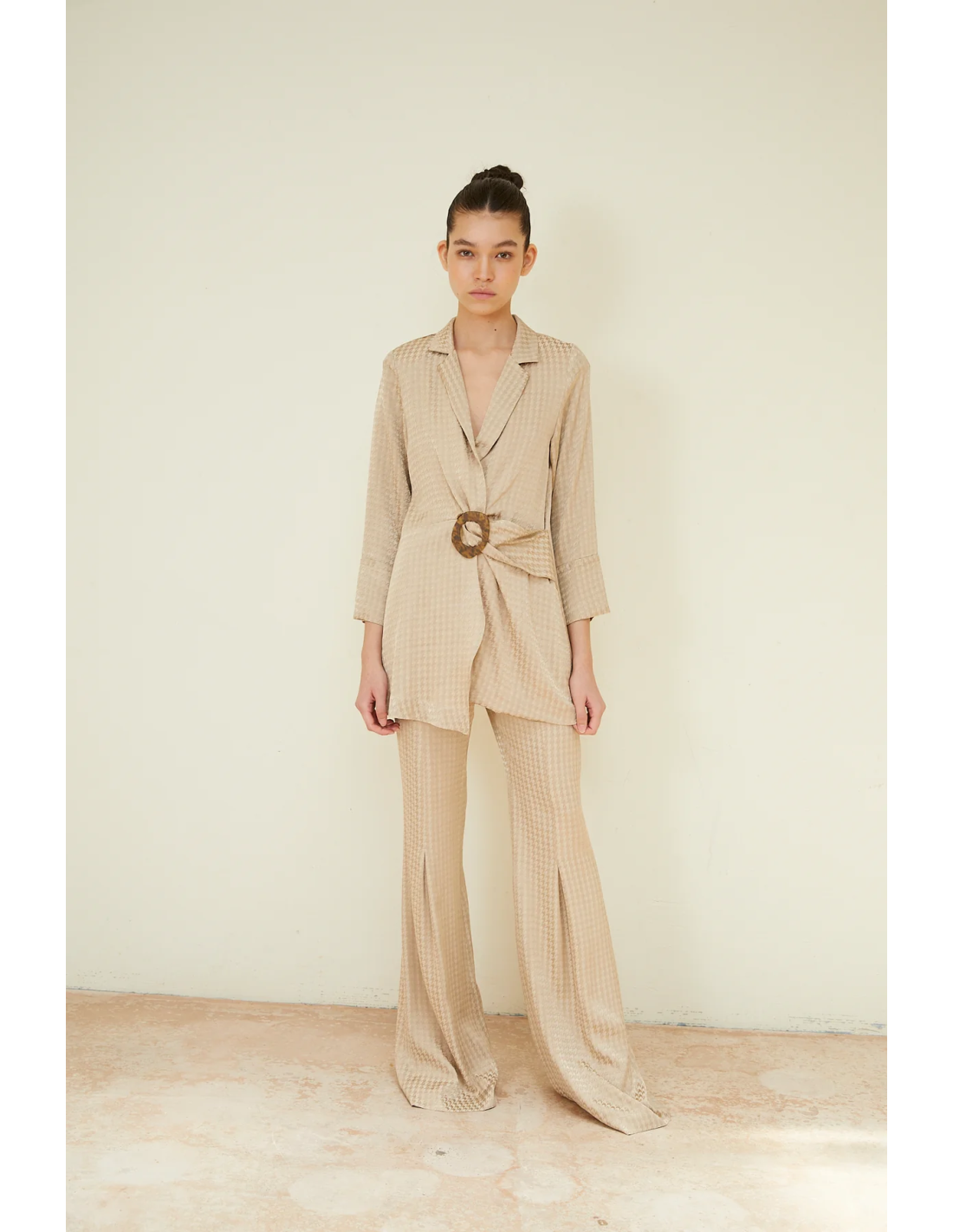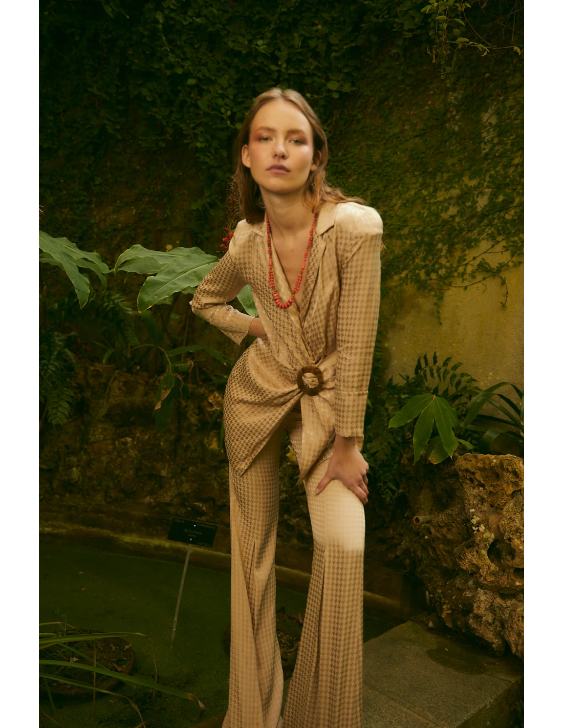 - Confeccionado en un estampado de pata de gallo en una tonalidad arena.