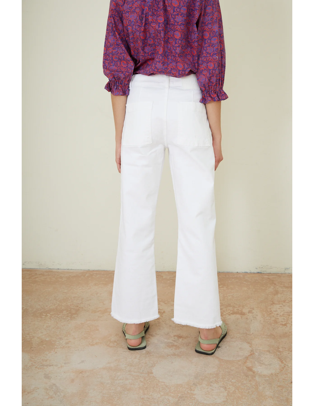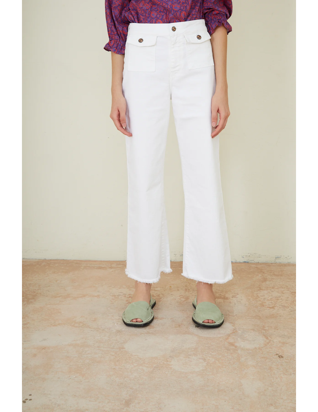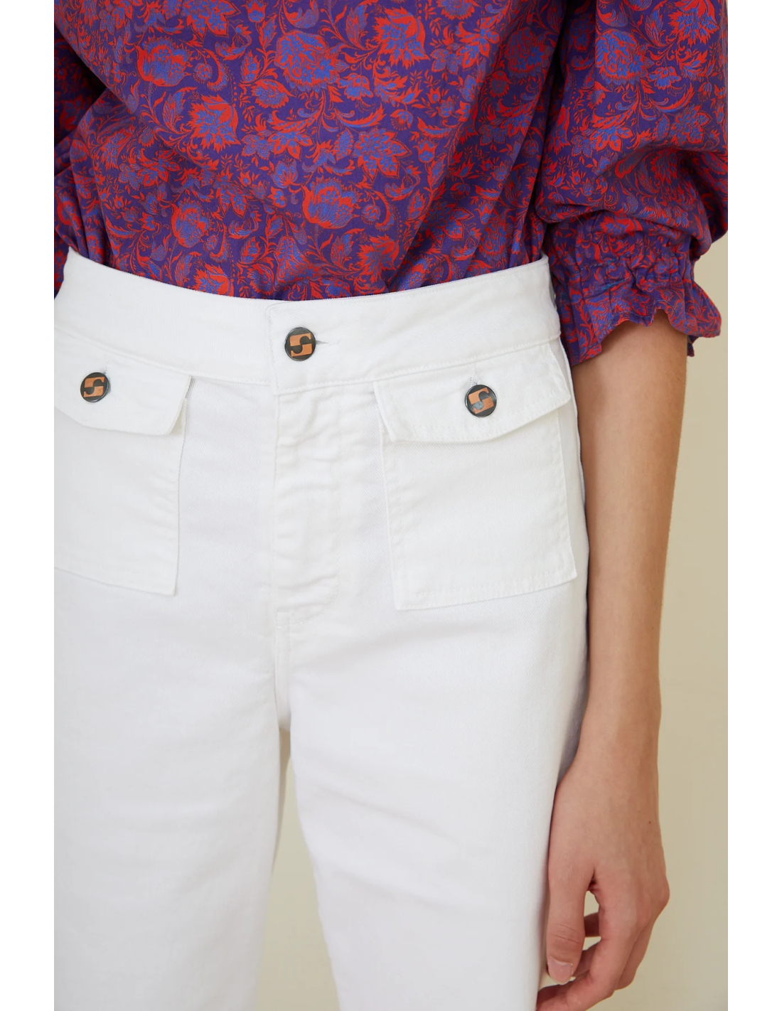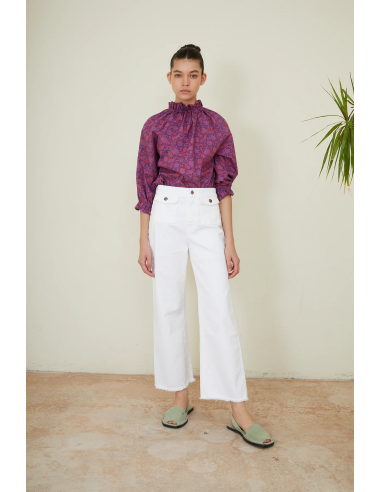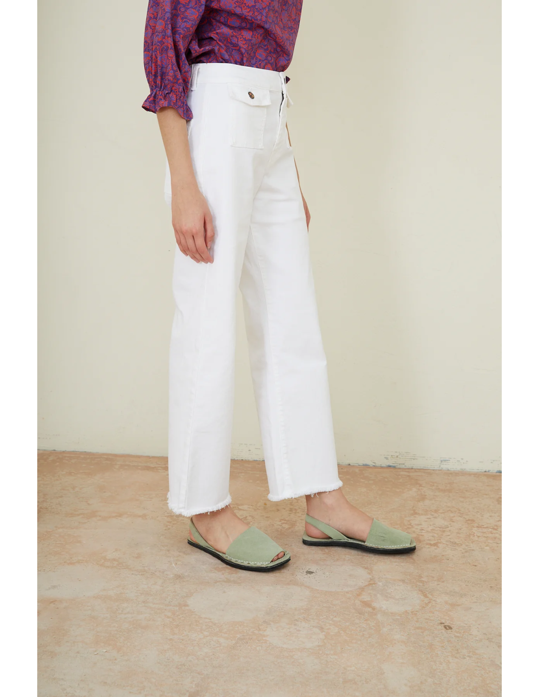 - Vaquero de tiro alto crop tipo flare, confeccionado en tejido 100% algodón