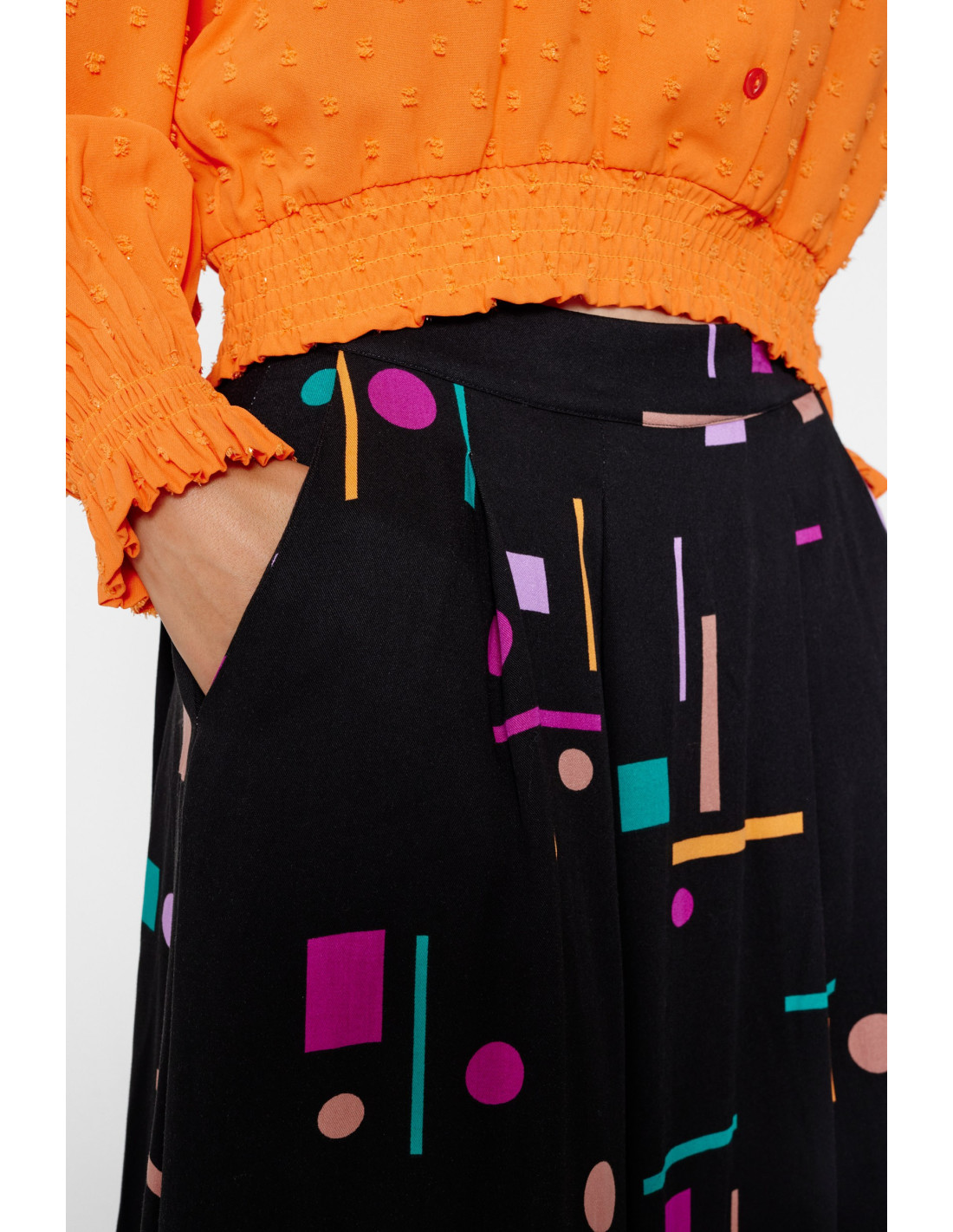 - Falda midi estampado geometrico