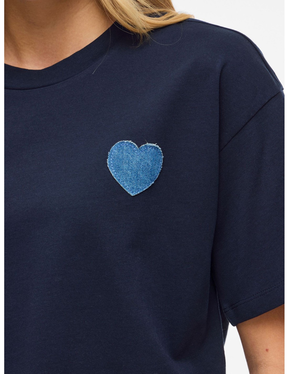 • Camiseta mangas cortas, con detalle de corazón en tela vaquera