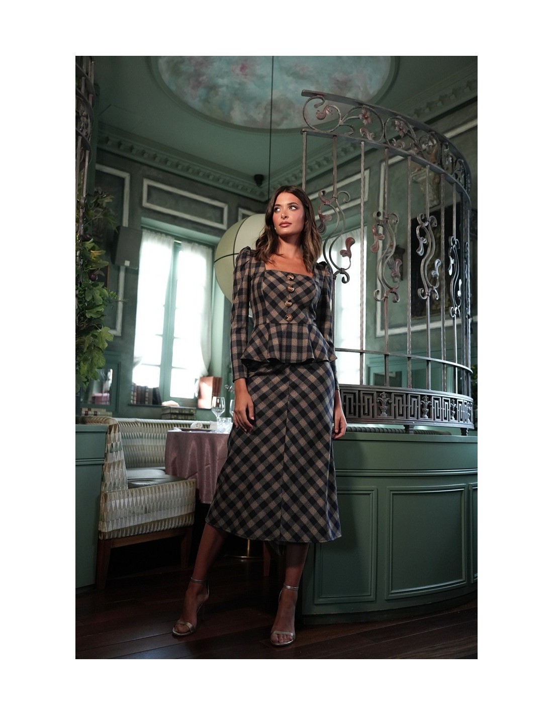 Falda Tena Cuadros Marino