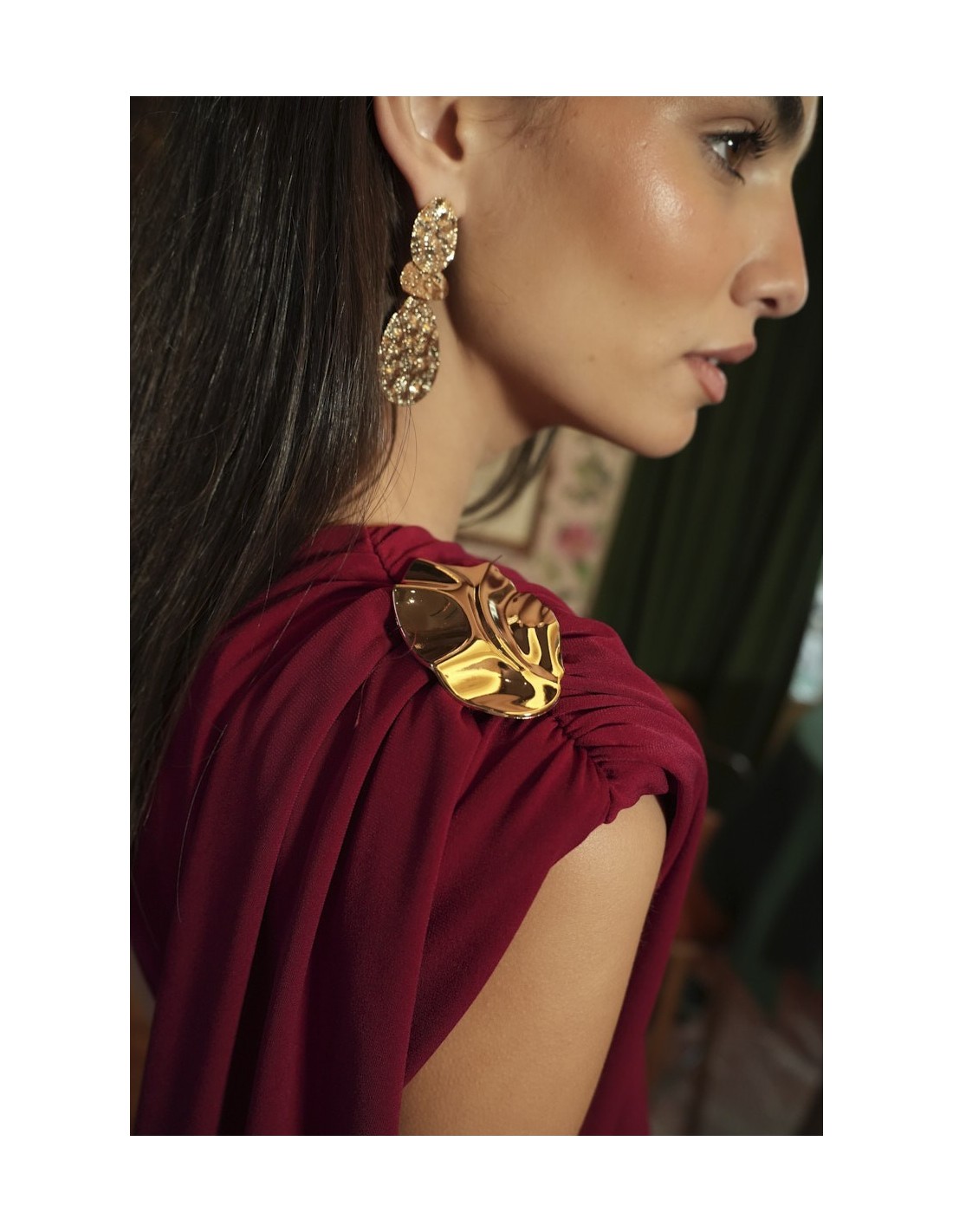 • Destaca por su delicada hebilla dorada en el hombro, y por la abertura en la falda, que aporta movimiento y feminidad.